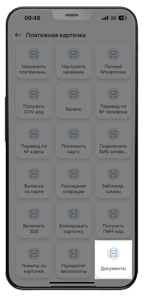 На главной странице во вкладке «Карты» при нажатии на карточку можно увидеть доступные операции по ней. Номер текущего (расчетного) банковского счета отображается в заявлении на открытие текущего (расчётного) банковского счета и выпуск карточки в разделе «Документы».