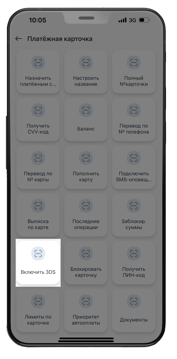 2. Выбрать карточку, по которой Вы хотите включить 3D-Secure, нажав на нее;