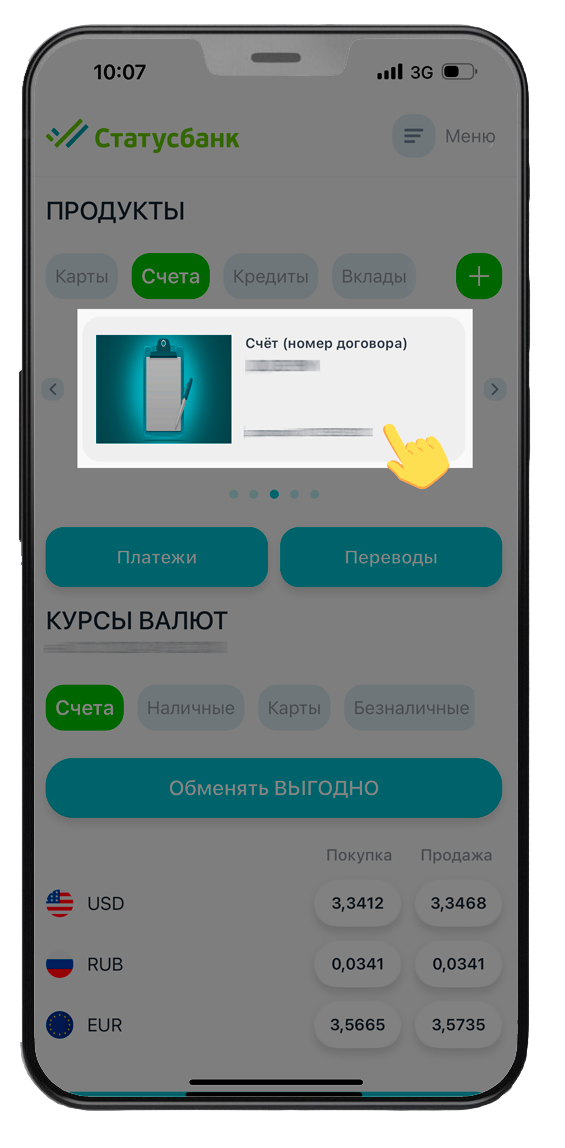 * Как просмотреть номер текущего (расчетного) счета в мобильном приложении: