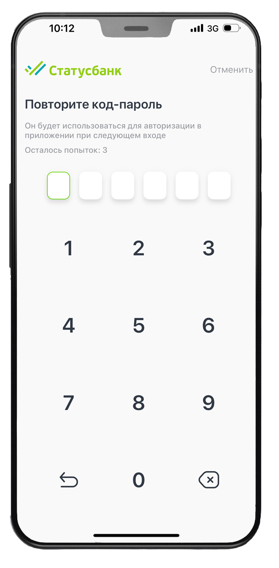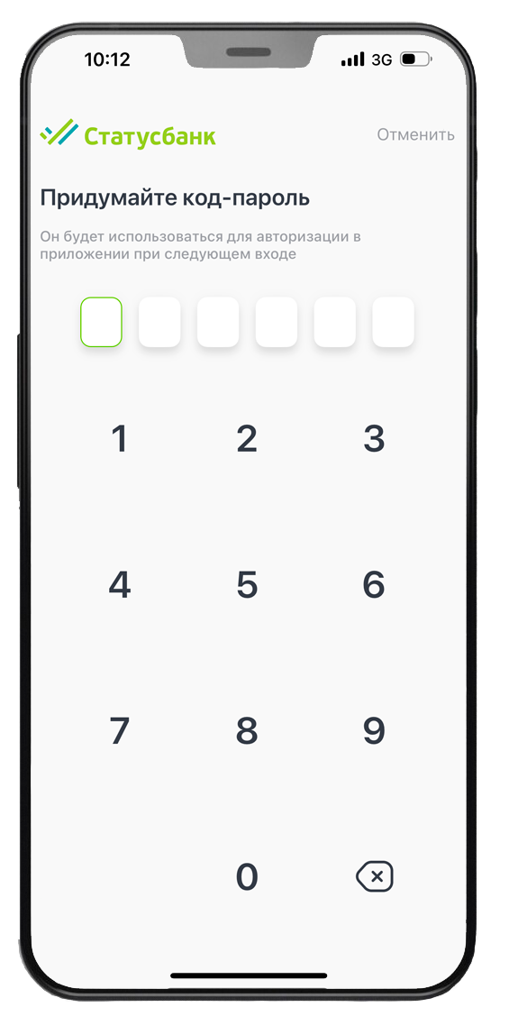 3. Создайте код-пароль, который будет использоваться для авторизации в приложении при следующем входе. Повторите ввод кода-пароля.