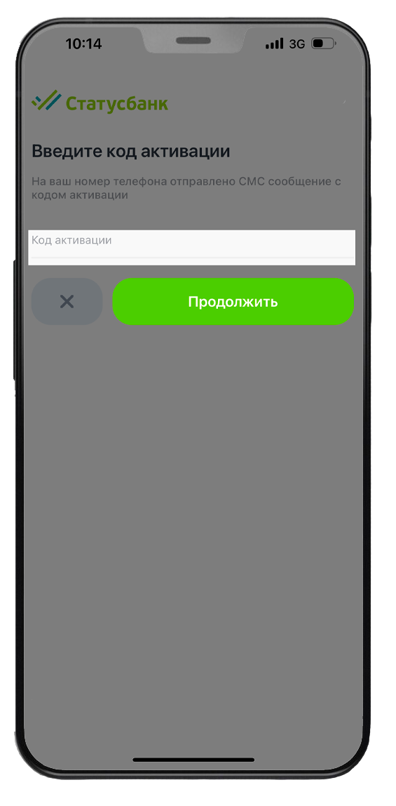 4. Введите код активации из SMS-сообщения → «Продолжить».