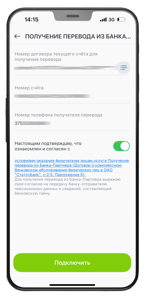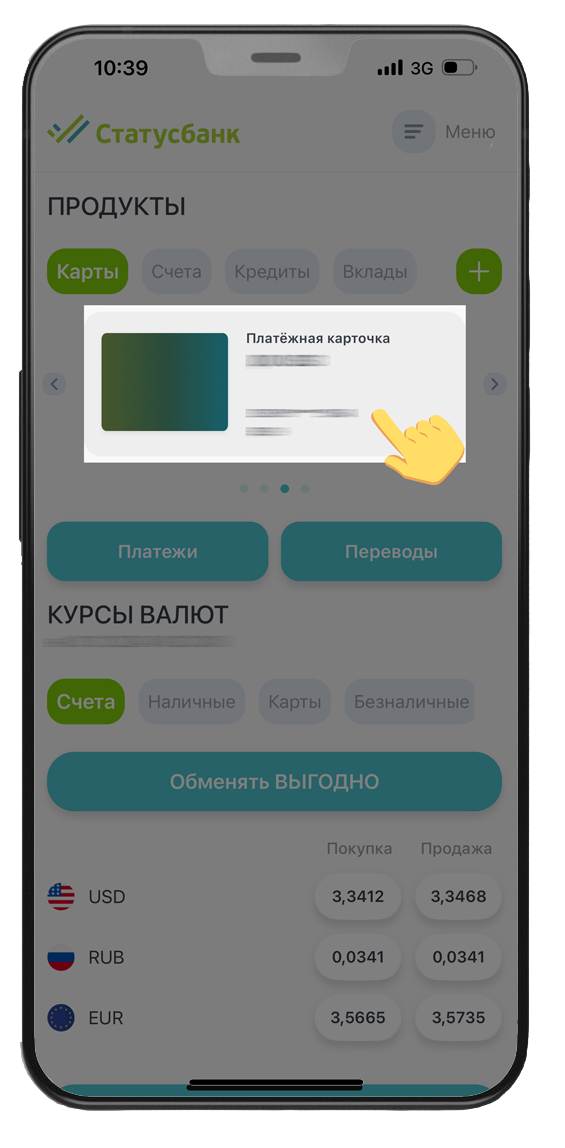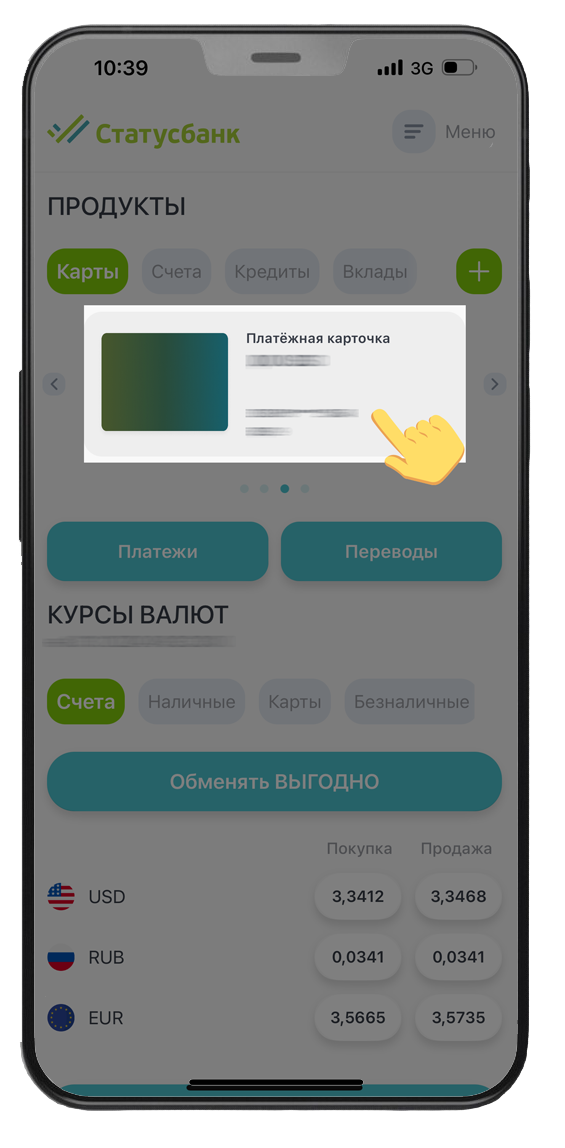 Внимание! В случае пополнения карты Crypto Статус с иной карты, открытой в ОАО «СтатусБанк», в мобильном приложении или web-версию Интернет-Банка по номеру карты или по номеру телефона, отражение операции по счету – до 8 календарных дней.