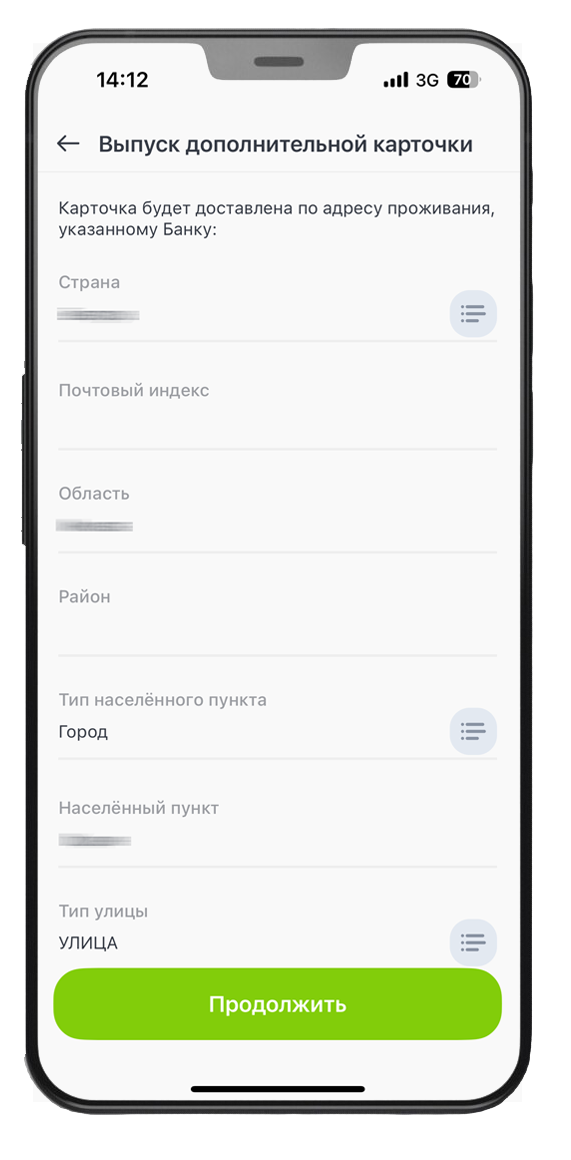 5. Заполните почтовый индекс и проверьте корректность адреса доставки карты → «Продолжить».