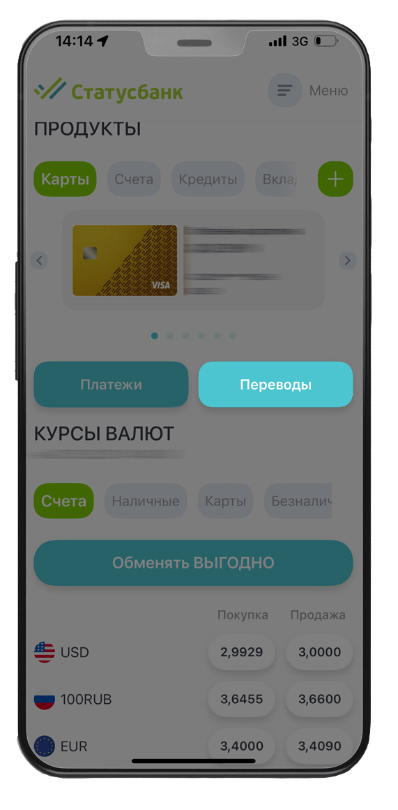 меняйте валюту в приложении СтатусБанк 2.0 с сервисом "Обменять выгодно"